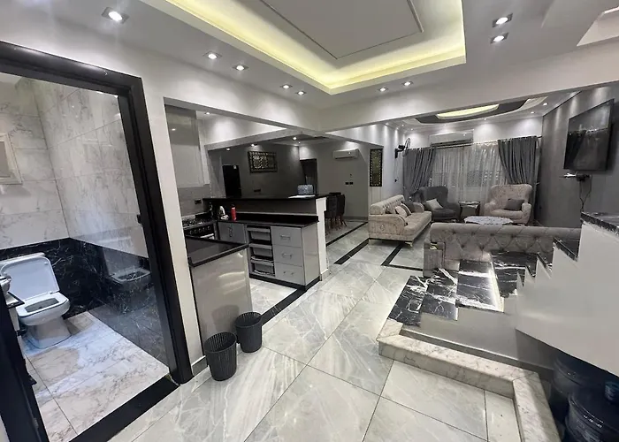 El Luxury Duplex Apartment In Misr Al Gadeda El El Cairo está situado a una distancia de 2 km del Parque Meriland, y a poco más de 25 minutos a pie de las Pirámides de Saqqara. El apartamento ofrece instalaciones modernas, como Wi-Fi y servicios esenciales como un aparcamiento para los que viajan en coche.